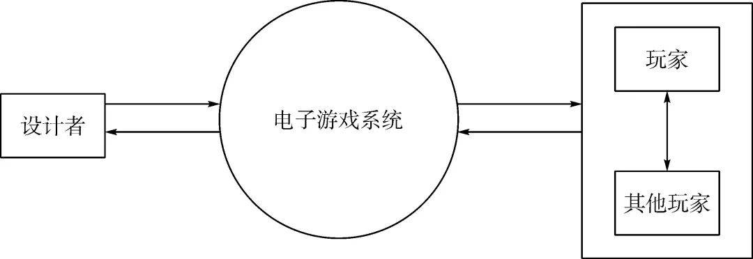 具体到电子游戏系统里,就成为对设计者、电子游戏、玩家、其他玩家之间动态关系的分析,如图1所示。设计者、玩家群体共同构成了电子游戏系统的心智机制,也是电子游戏系统多语言的异质性来源。设计者创造了最初的电子游戏系统,从规则开始建立起一个充满符号的虚拟游戏世界;电子游戏系统同时作为作品和母题存在,为玩家和设计者提供对话的基础;玩家作为同样有心智的主体步入电子游戏世界中,与设计者、其他玩家、电子游戏同时成为彼此之间的“他者”,面对主体间的差异努力进行“不可翻译的翻译”,根据当下语境进行符号或符号关系创建,宛如投入平静湖面的石子,意义和变化也就在石子进入湖水的同时随之荡漾开来。在创造和完善电子游戏的过程中,设计者在“创作者”和“玩家”身份之间转换,既创作自己构想中的作品,也以想象中的玩家身份试玩电子游戏,对电子游戏进行调试。玩家在电子游戏内测(3)和上线市场以后加入进来,在电子游戏中作为“主演” “观众”与“剪辑师”而存在,行使三种不同的权力,成为电子游戏语义爆炸的主要动因。