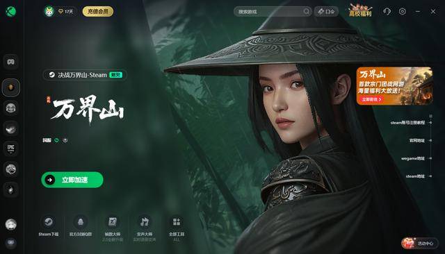 在当下MMO横行,氪金当道的时代,《决战万界山》用最纯粹的玩法走出了一条不一样的道路,喜欢的朋友可以直接在Steam免费开玩,推荐使用官方独家合作的迅游加速器来游玩,可以免费加速《决战万界山》,可以有效解决游戏过程中遇到的网络延迟、卡顿、掉线等网络问题,享受丝滑流畅的游戏体验。