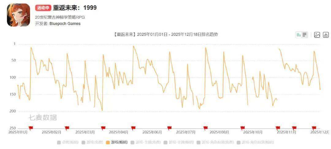 此外,《重返未来:1999》则是凭借差异化题材成为了2023年的“黑马”;