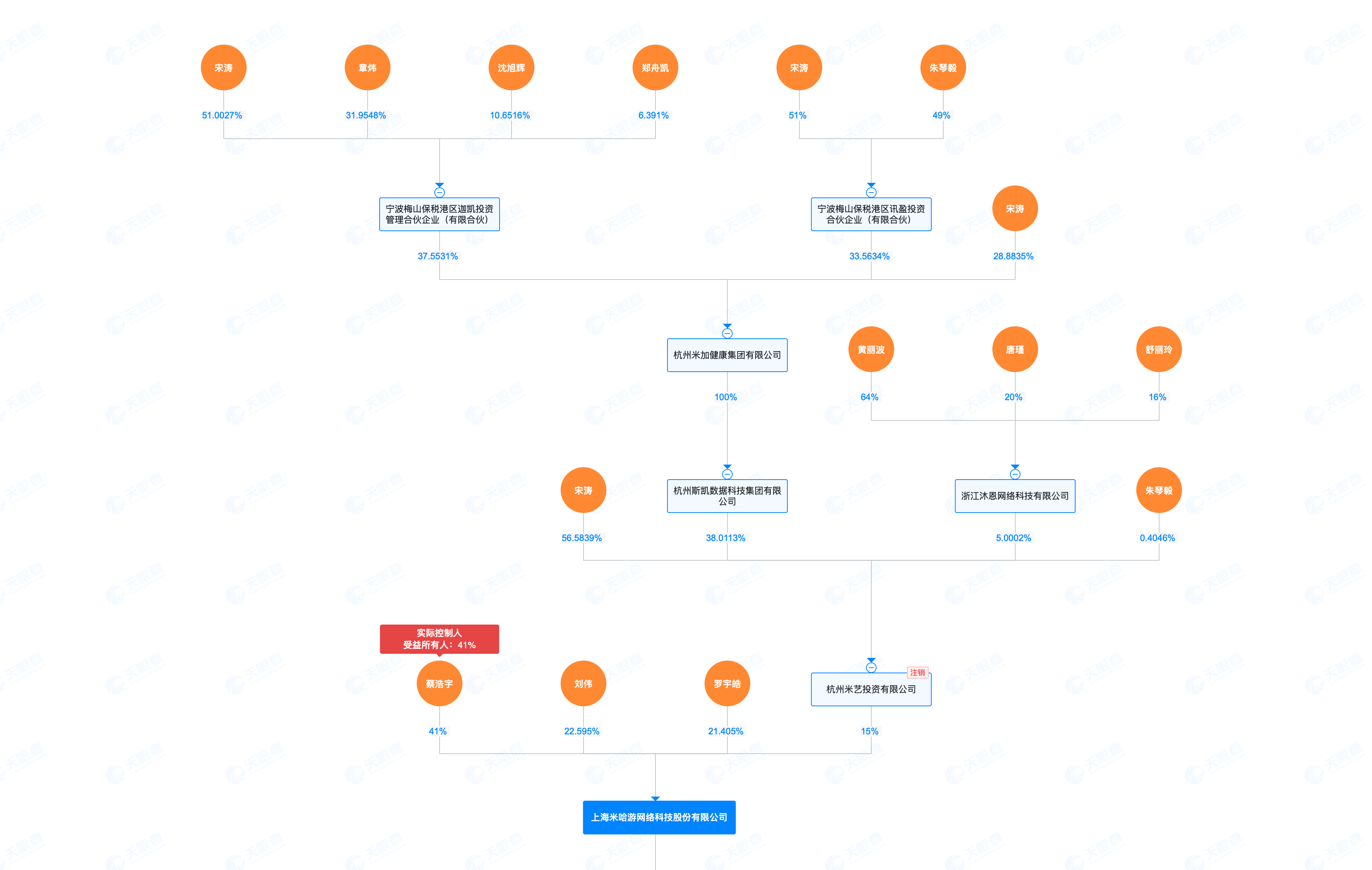 而在经历多次股权交易后,米哈游的股东也由斯凯网络变成了杭州米艺投资有限公司(下称:米艺投资),但其控制人还是宋涛,最终受益股份高达12.2025%。
