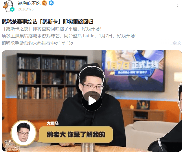 虎牙作为游戏的联合发行,在直播侧助力不少,请来芜湖大司马担任代言人,更集结了涵盖电竞、娱乐、桌游等领域的百人主播矩阵,《鹅鸭杀》赛事综艺“鹅斯卡”也重磅回归。项目组还表示,将继续优化游戏体验,推出更多角色、地图及玩法模式,并深化社区运营,举办线上线下赛事活动,打造长线的游戏生态。
