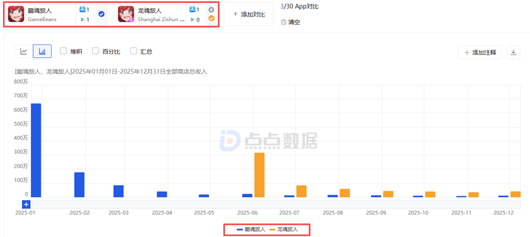 事实上,经过多款同类产品的尝试,“二次元美少女题材+放置卡牌玩法”这套组成紫龙已经相当成熟,去年1月上线中国港澳台(首月流水5130万元),6月上线中国大陆(首月iOS端2380万元)的《龙魂旅人》便是一个成功案例,然而该作虽然短期成绩亮眼,但后续动力不足,目前中国港澳台及中国大陆市场月流水预估在400万左右(不包含国内安卓端),而长线问题也是《空灵诗篇》需要克服的;