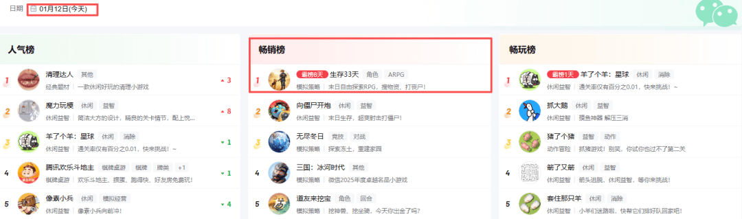 1月8日益世界推出的SLG《疯狂水世界》(上线安卓端以及小游戏版,未登陆APP Store),该作为“海上末日生存”题材,采用常见的“模拟经营+SLG”的游戏框架,其首日登上了微信小游戏畅销榜第20名,目前已经上升进TOP10;