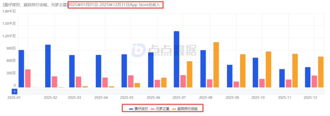 上线万元,将该成绩与同一时间市场上其他派对游戏相比较,《蛋仔派对》(522万)与《超自然行动组》(493万)的成绩都略高于前者,《元梦之星》以148万排名最后。