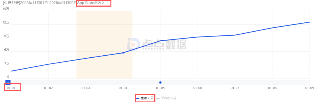 需要一说的是,目前在小游戏端火爆非常的三七互娱旗下末日自由探索“搜打撤”RPG《生存33天》(霸榜微信小游戏畅销榜TOP1共计8天,打破了SLG与塔防产品对该榜首长达一年多的垄断)也已经于1月1日登陆了APP Store,其9天iOS端累计下载量约为28万左右,总流水预估在460万左右且一直处于稳定增长中。