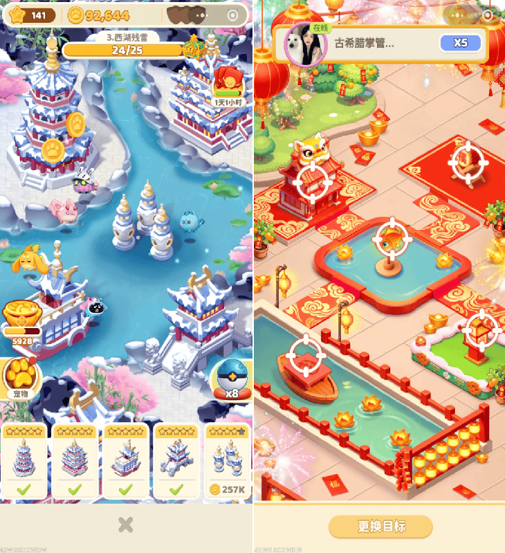 第三重社交,则是粘性。《月之村》采用的是T3-MCC类游戏常见的贴纸交换,透过交换的方式实现双方玩家共同完成活动奖励。除此之外还包含短周期的排名竞争活动,以及好友之间的活动道具互偷转移。在这个过程中,游戏主要目的为了将前面提及的“轻报复”环节,透过多元互动的方式,最终将游戏生态引导为正向、良性的社交生态。玩家之间从恶性社交到良性社交的过程中,需要以非竞争形式实现游戏内利益,也就是互助、协作。然而,《月之村》实际上在商业化上可以进行一定程度的创新。T3-MCC类游戏适合于“组团付费”的性质,将玩家以个体为单位的付费转换成小队形式付费,从而将社交的点对点形式,拓展至小组及2人组队形式。而在国内市场方面,该部分实际上可以考虑参考《我的花园世界》部分进行一定的商业化优化,而非大幅度沿用海外MCC板块的由社交互动转换消耗资源付费的形式。